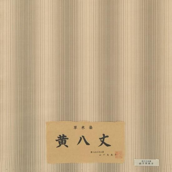 日本工芸会正会員「山下芙美子」草木染手織「黄八丈」「変わり細縞」「1尺2分」
